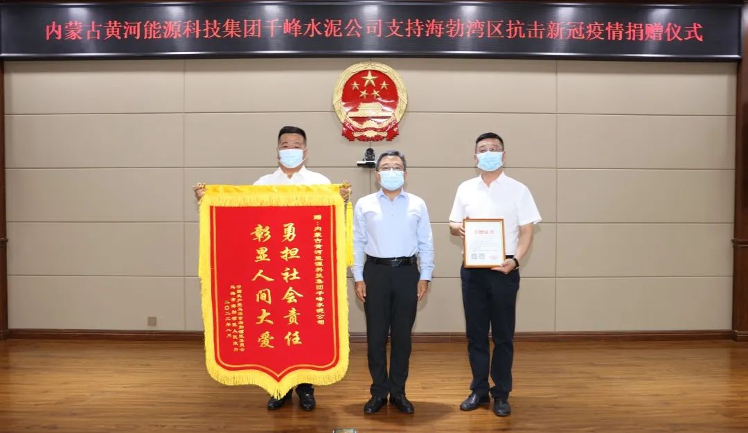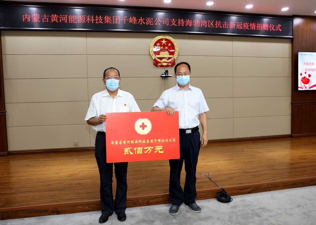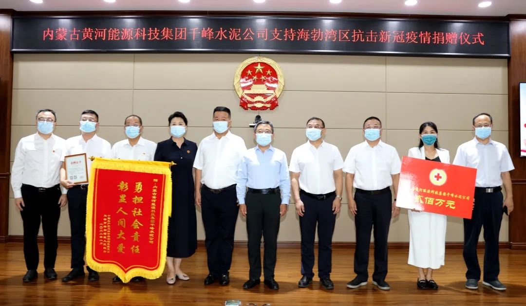 8月10日,内蒙古黄河能源科技集团千峰水泥公司抗疫捐赠活动仪式在海勃湾区人民政府举行,乌海市委常委、海勃湾区委书记孙昊,区委副书记、政府区长崔洪波,黄河集团董事长马文义等领导出席捐赠仪式。黄河集团千峰水泥公司捐赠200万元支持海勃湾区抗击疫情。