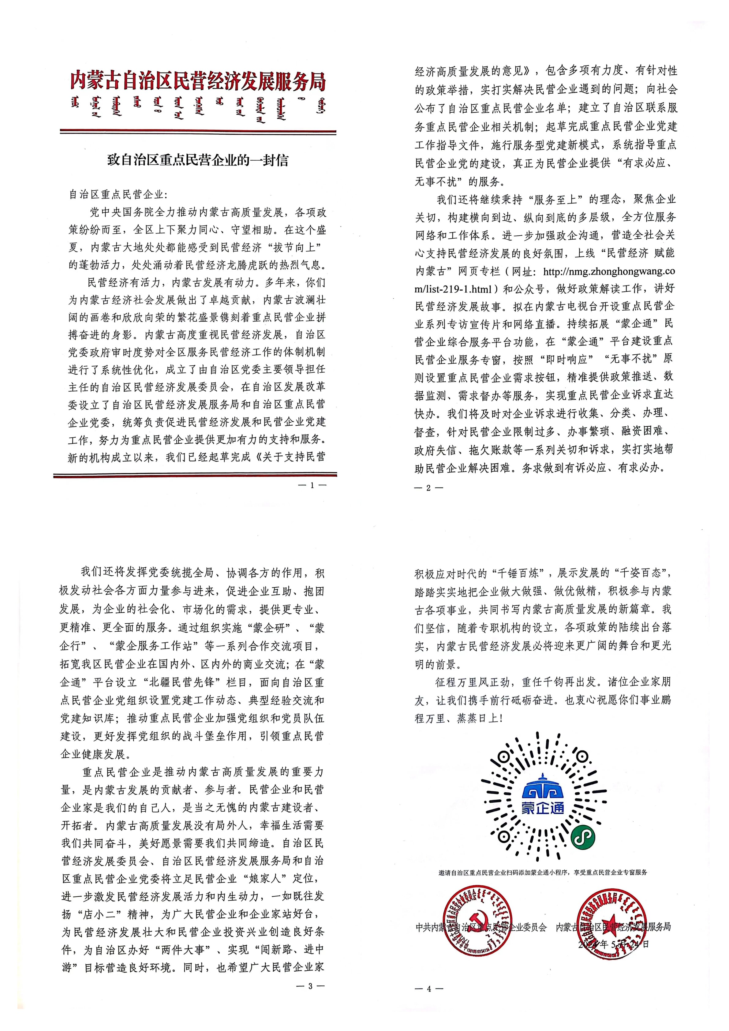 为了进一步激发民营企业发展活力和内生动力,支持广大民营企业健康发展,自治区民营经济发展服务局会同自治区党委组织部、社会工作部等相关部门拟定的重点企业评选标准,对自治区民营企业进行重点企业评选。经过严格梳理并进行信用核查,内蒙古黄河集团再次入选《自治区重点民营企业名单》。