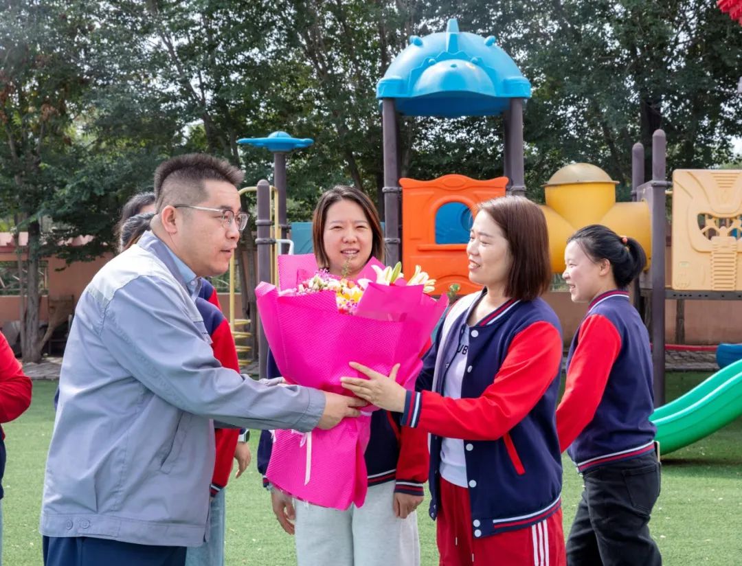 金秋九月,桃李花开,教师节如期而至。在这个特别的日子里,内蒙古黄河集团党委副书记、行政总监李锦荣受集团党委书记和董事长委托,带领党办、工会、行政到黄河集团幼儿园,为兢兢业业的教师们送上教师节的节日祝福与鲜花和慰问金。