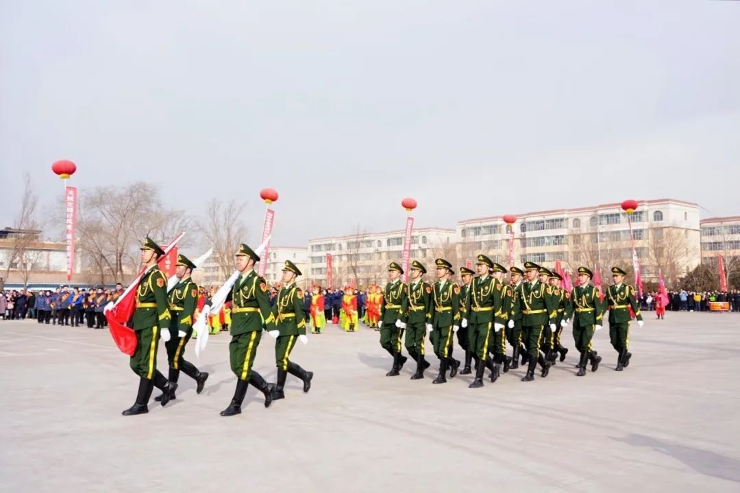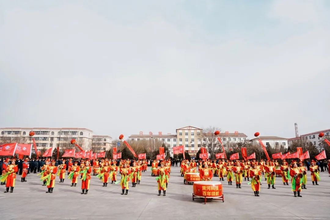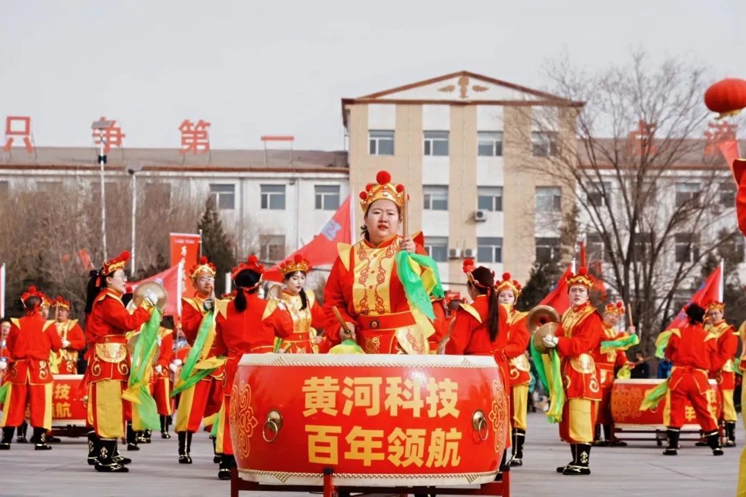 升旗结束后,威风锣鼓队闪亮登场!威风锣鼓,向来凭借那雄浑磅礴的气势以及热烈欢快的节奏而声名远播。激昂的锣鼓声如春雷滚滚,振奋人心,其磅礴的气势瞬间点燃了现场气氛,展现出黄河集团一往无前的创业激情与蓬勃活力。