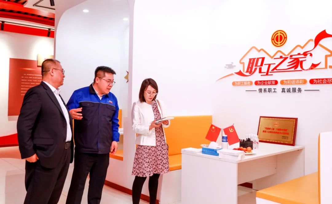 在参观黄河集团党群服务中心中,讲解员介绍到,2021年,黄河集团被市总工会纳入“加强非公企业党建带工建,探索推进非公有制经济和社会组织开展党建、工建方式方法项目试点”单位。黄河集团工会坚持党对工会工作的领导,始终把学习宣传贯彻习近平新时代中国特色社会主义思想作为重要政治任务,在乌海市总工会的领导下,按照“党建带工建、工建服务党建”的要求,充分发挥工会组织的桥梁纽带作用,实现党的活动、工会活动与促进企业高质量发展有机结合。