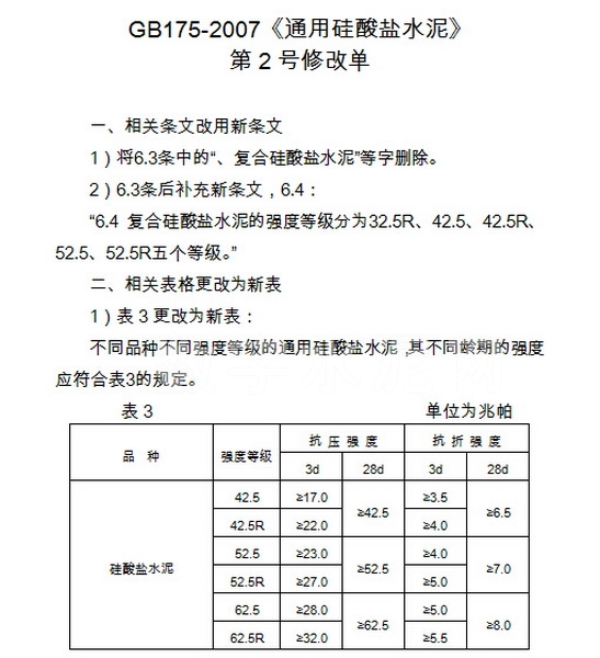 文件下载:关于批准发布GB 175-2007《通用硅酸盐水泥》国家标准第2号修改单的公告