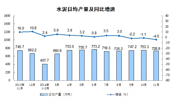 【数字水泥网讯】根据国家统计局公布的数据显示,2014年11月份水泥产量21863万吨,同比下降4.0%;2014年1-11月份全国规模以上水泥产量227179万吨,前11个月累计水泥产量增长为1.9%。